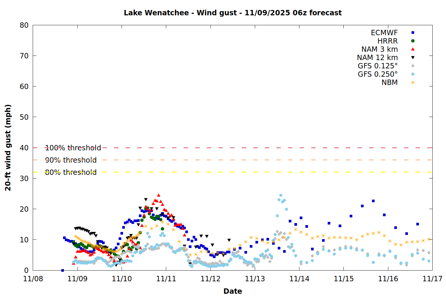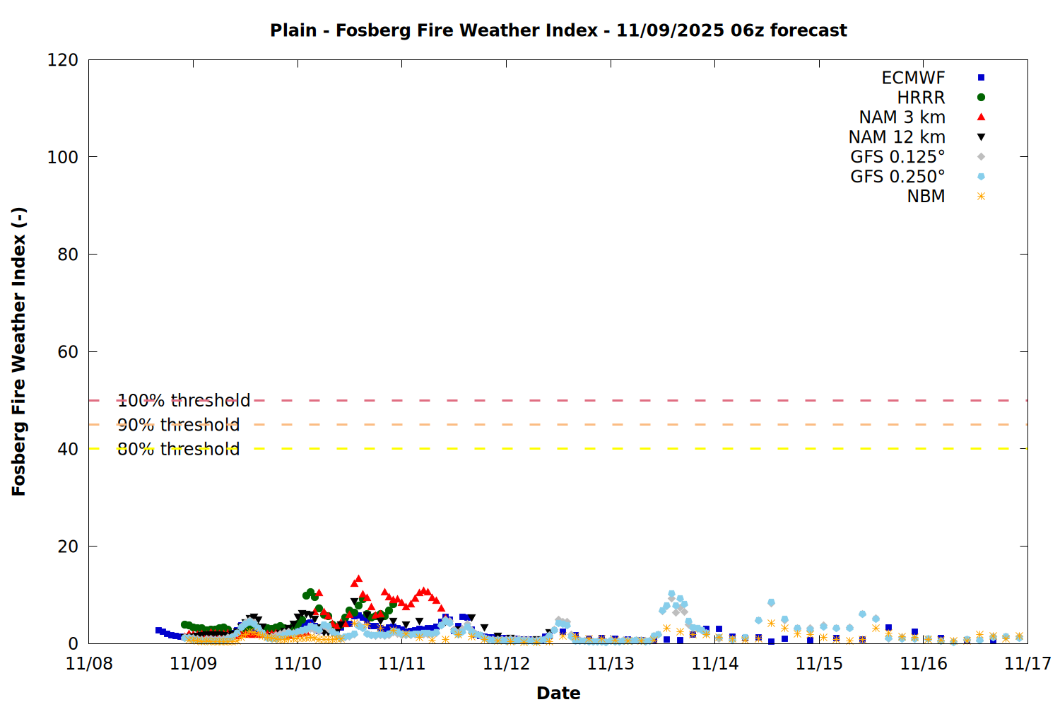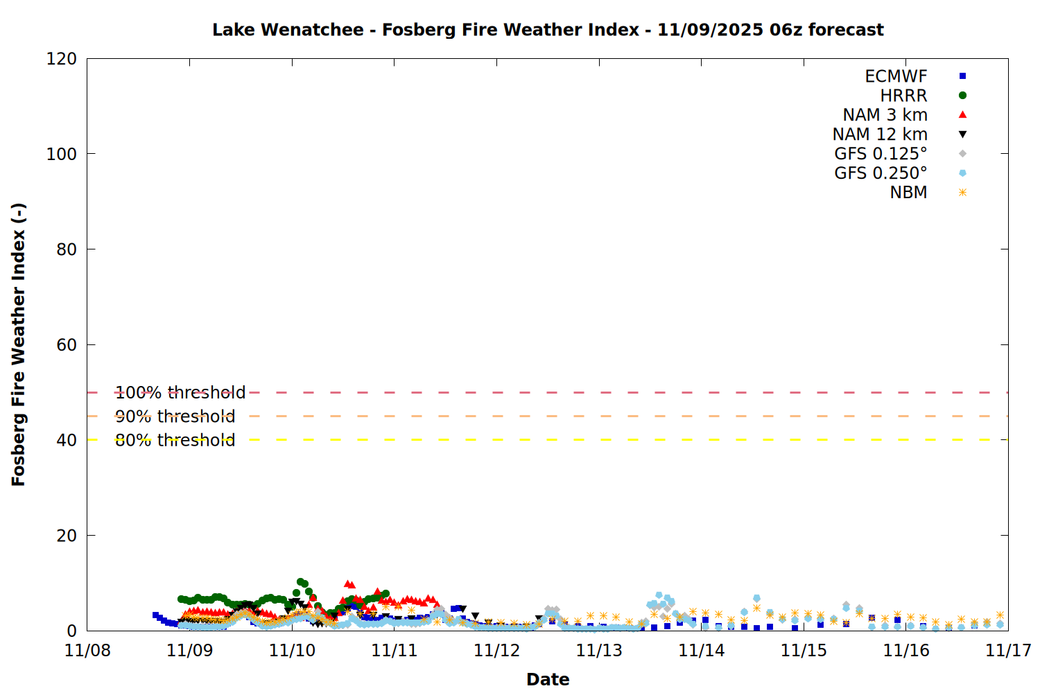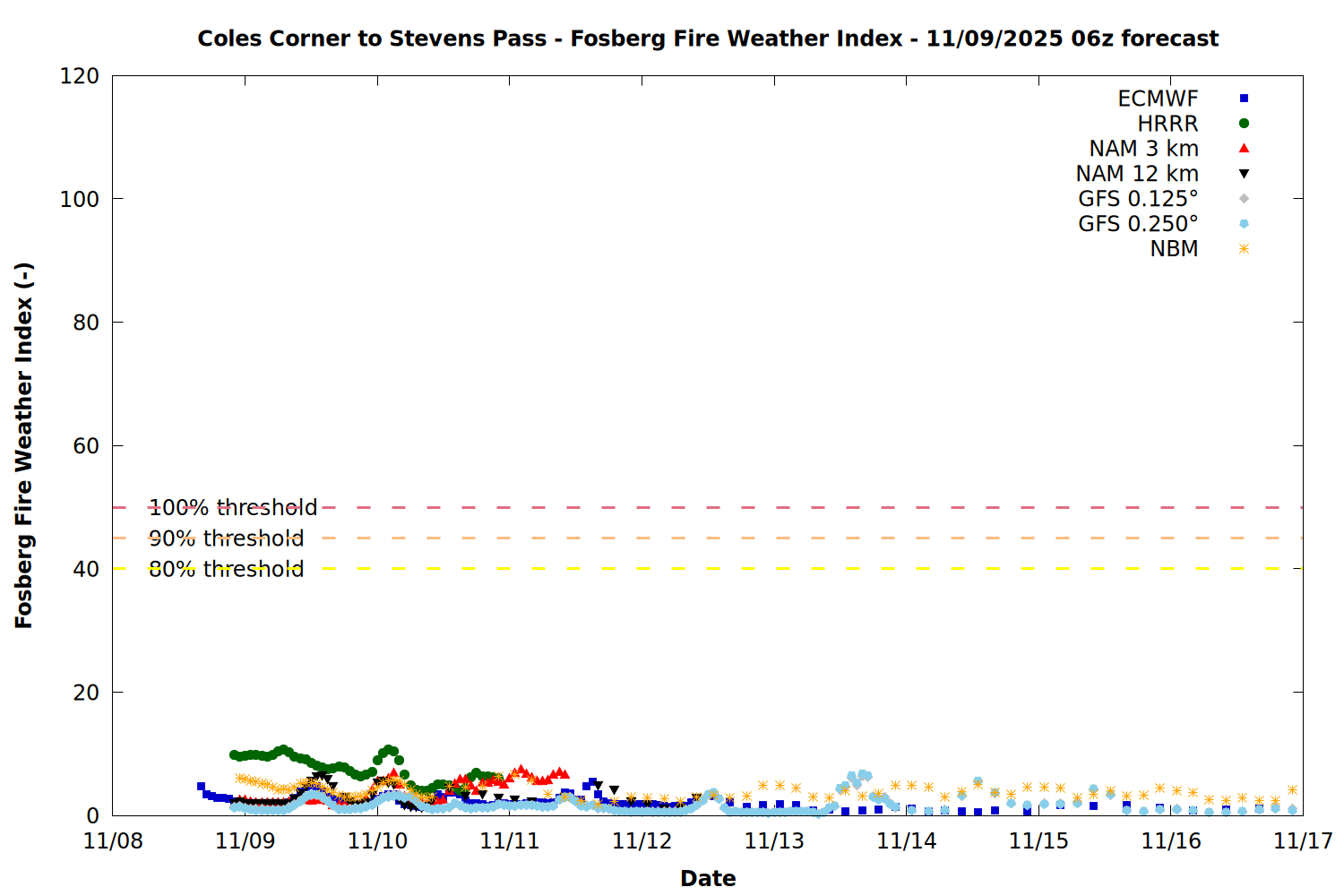Chelan County PUD Fire Weather Summary Plots - 11/09/2025 06z forecast