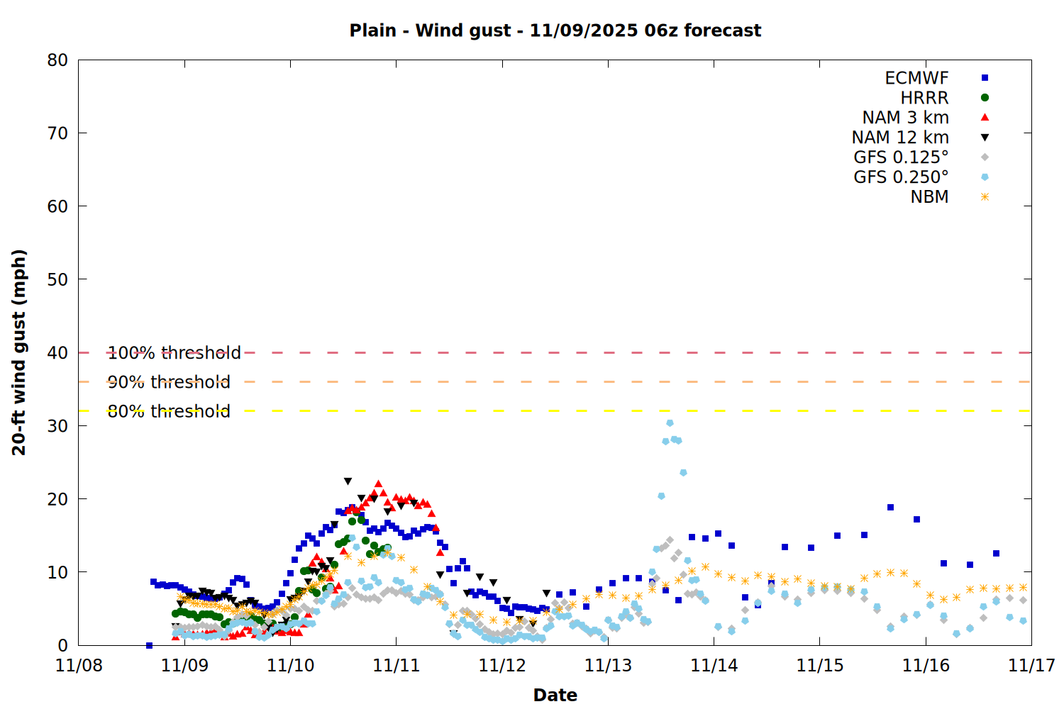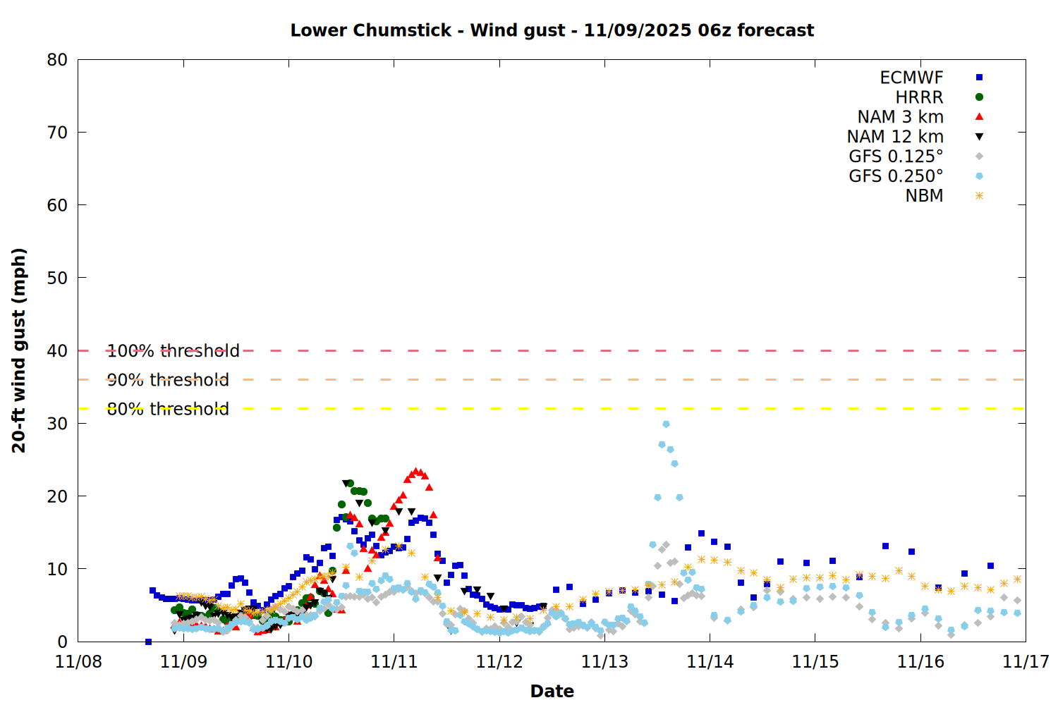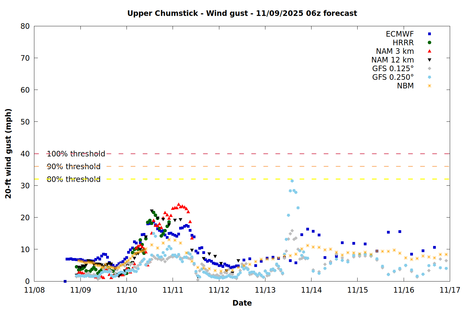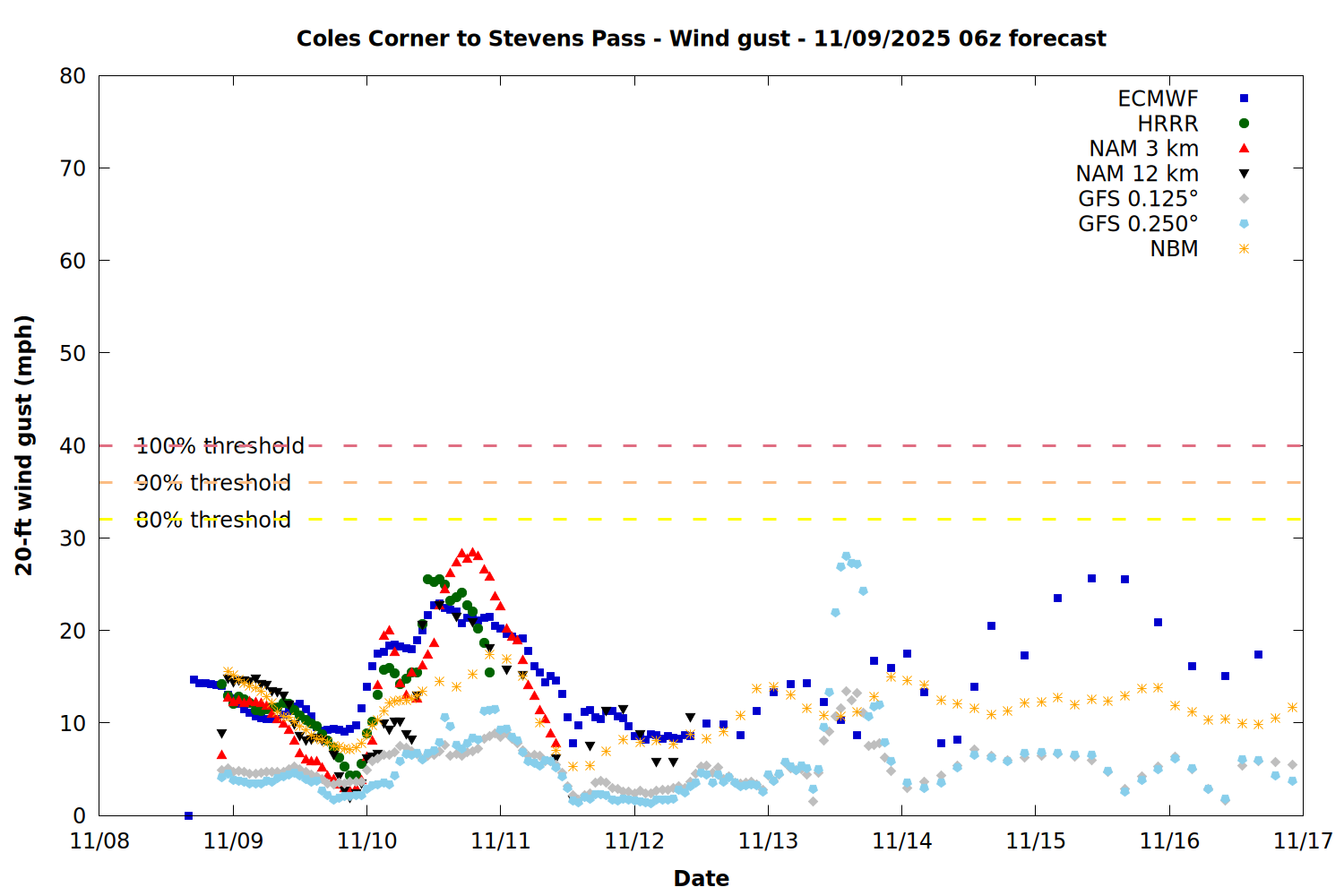 Chelan County PUD Fire Weather Summary Plots - 11/09/2025 06z forecast