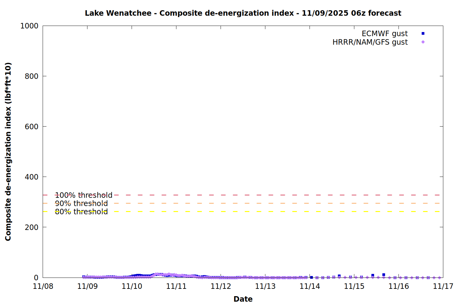 Chelan County PUD Energy Release Component Forecast for 11/09/25 - 11/15/25